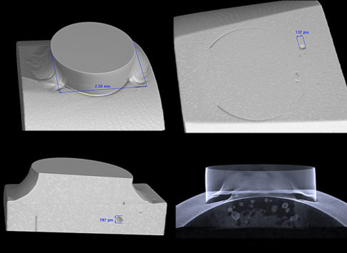 Komplexní analýza inkluzí, porozit a jiných defektů uvnitř materiálu.