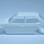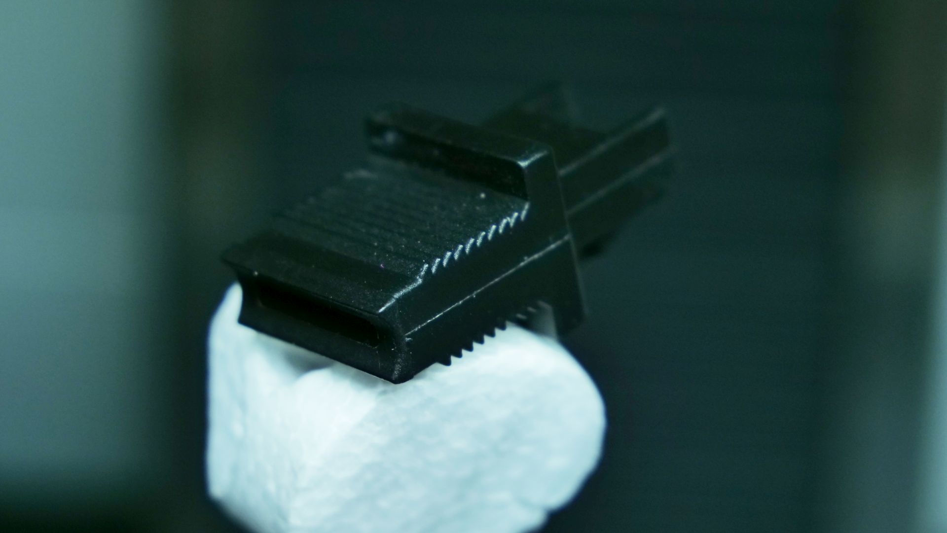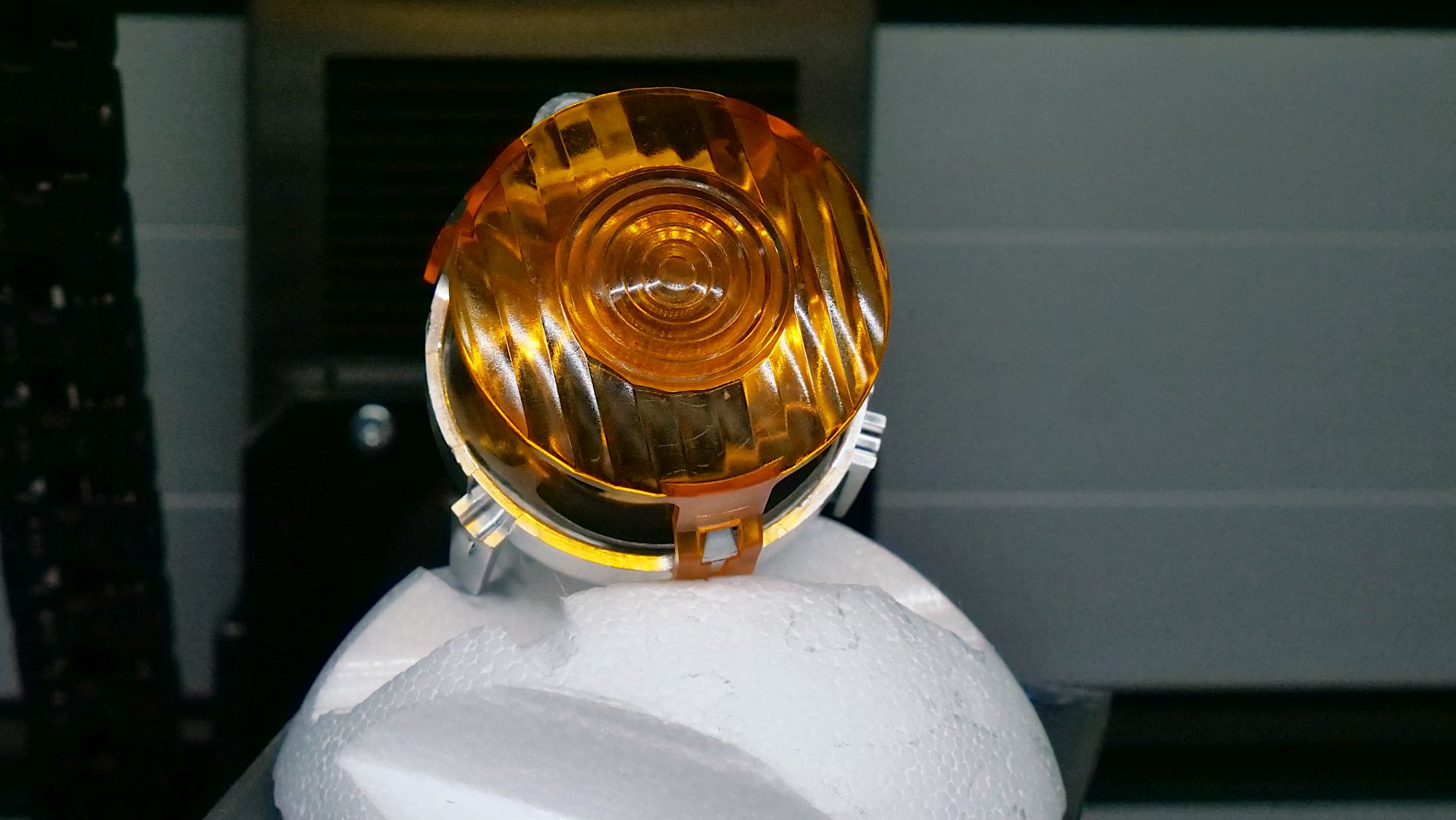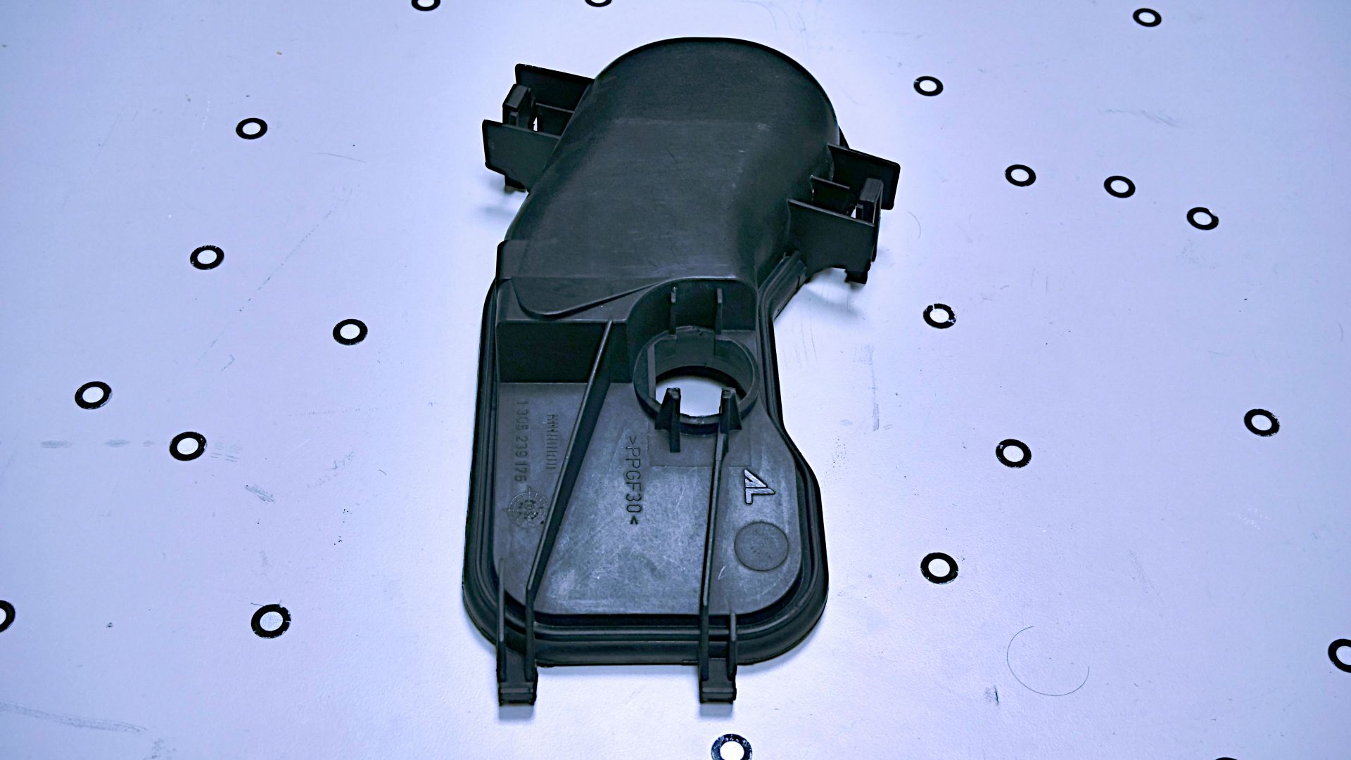 Naskenovaný plastový uzávěr světlometu o rozměrech cca 250x120x50 mm. Plastový kryt byl skenován bez zmatňování povrchu v originální černé barvě. Základní rozlišení polygonové sítě je 0,4 mm na hranu trojúhelníků. Použita funkce „Smart resolution HIGHT“ – v místech s vyšší křivostí je rozlišení polygonové sítě automaticky počítáno na polovinu, nebo čtvrtinu hodnoty základního rozlišení. Rovné plochy tedy 0,4mm, střední detaily 0,2mm a nejmenší detaily 0,1mm.