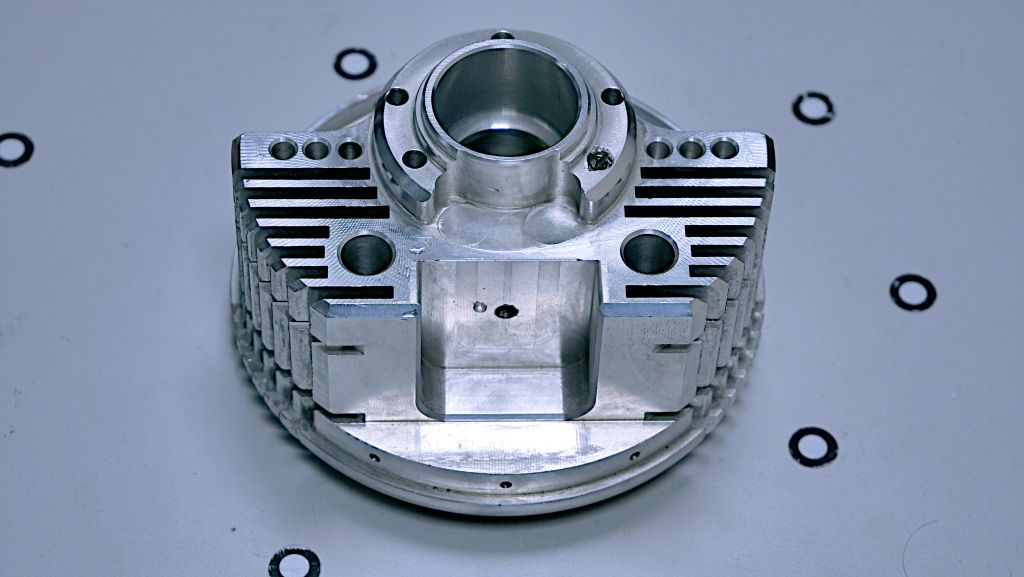 Naskenovaný hliníkový díl o rozměrech cca 130x130x90 mm. Díl byl skenován bez zmatňování povrchu. Základní rozlišení polygonové sítě je 0,2 mm na hranu trojúhelníků. Použita funkce „Smart resolution“ – v místech s vyšší křivostí je rozlišení polygonové sítě automaticky počítáno na polovinu základního rozlišení, tedy 0,1 mm.