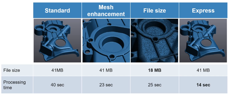 Díky novým algoritmům přepočtu polygonové sítě může uživatel lépe ovlivňovat výslednou podobu exportovaného STL souboru. K dispozici nyní máme tyto možnosti: