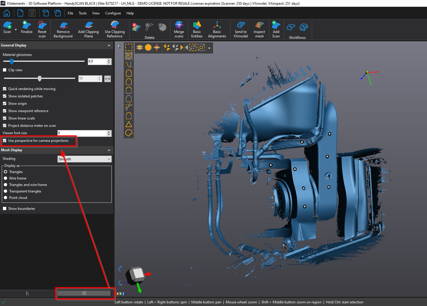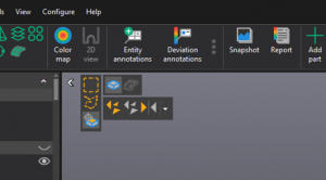 Uživatel si nyní může pomocí rychlých ikon jednoduše volit, zda chce vybírat data na skenu, nebo CAD modelu.
