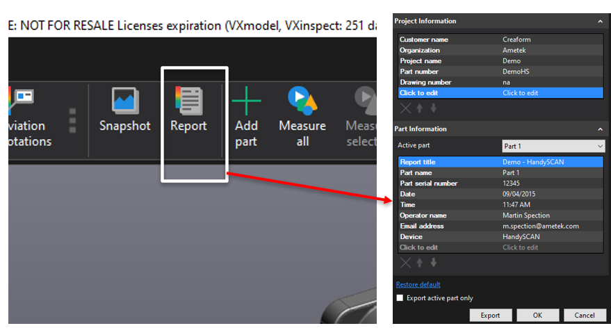 Ve verzi VXinspect 8 lze přidávat vlastní editovatelné pole do hlaviček inspekčních reportů. Uživatel tak má možnost doplnit své potřebné informace k reportům.