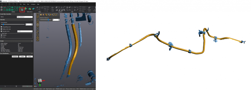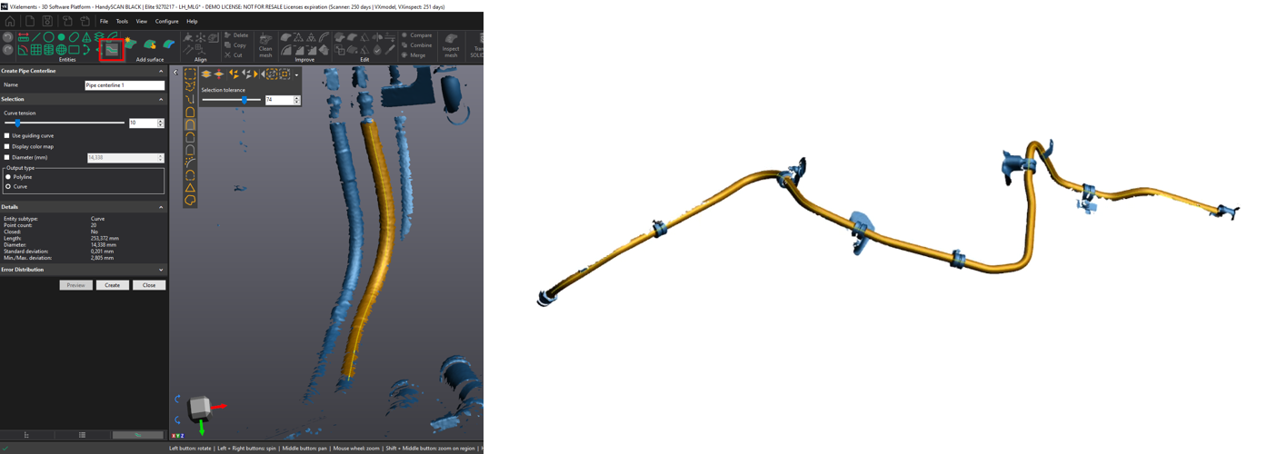 Ve VXmodelu stačí vybrat povrch trubky a program vám automaticky vygeneruje středovou trasu do 3D skici. Tuto trasu si pak můžete v CAD modeláři vyhladit a použít pro nové tažení.