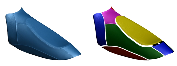 Uživatel si může sám nakreslit obvody jednotlivých částí na skenu. Program následně rozdělí síť na jednotlivé oblasti dle nakreslených profilů. Není nutné odřezávat jednotlivé oblasti po jednom. Nyní stačí nakreslit hranice oblastí a VXmodel provede separaci všech oblastí na jednou. Při tomto úkonu lze také rovnou zadávat jména jednotlivých částí a orientace v nově vzniklých sítích je tak jednoduchá.
