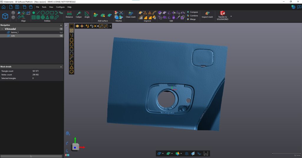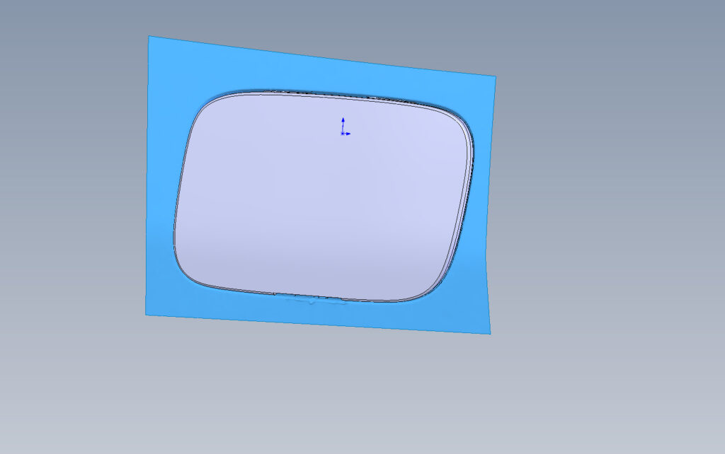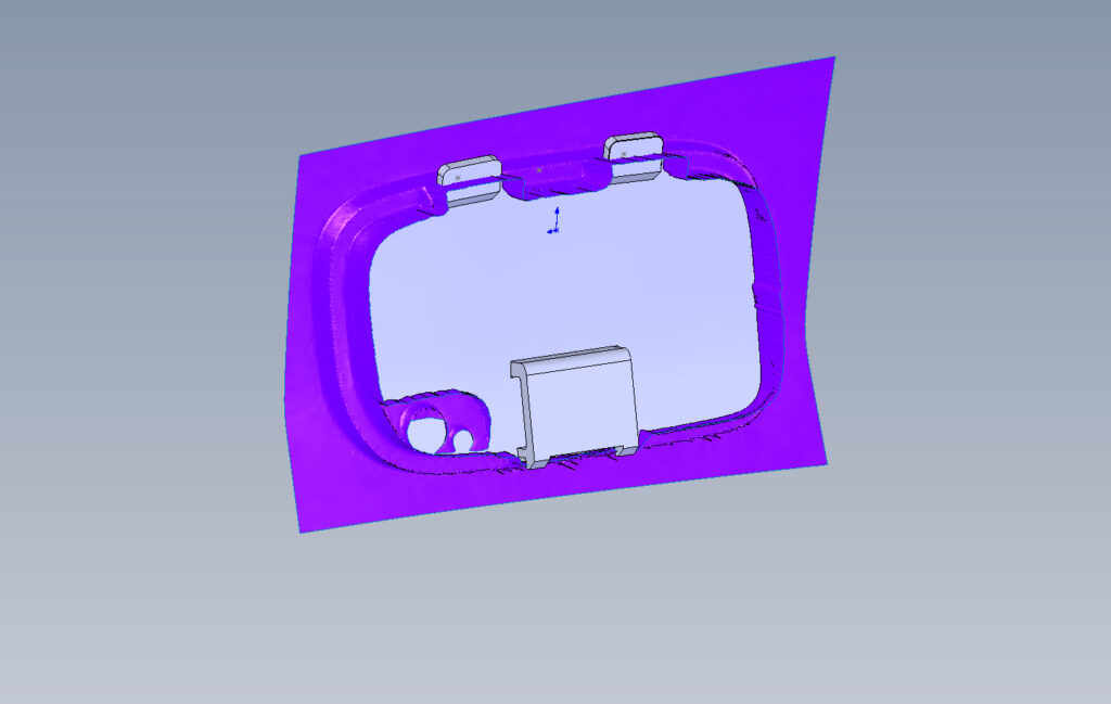Po naskenování nárazníku vznikl 3D model tvořený polygonovou sítí (1,2), tak pak byla použita jako podklad pro vytvoření a design samotné krytky vhodných rozměrů a tvaru v programu Solidworks (3,4,5,6). Takto vytvořený parametrický model byl opět převeden na polygonový model a vytištěn na obyčejné 3D tiskárně.