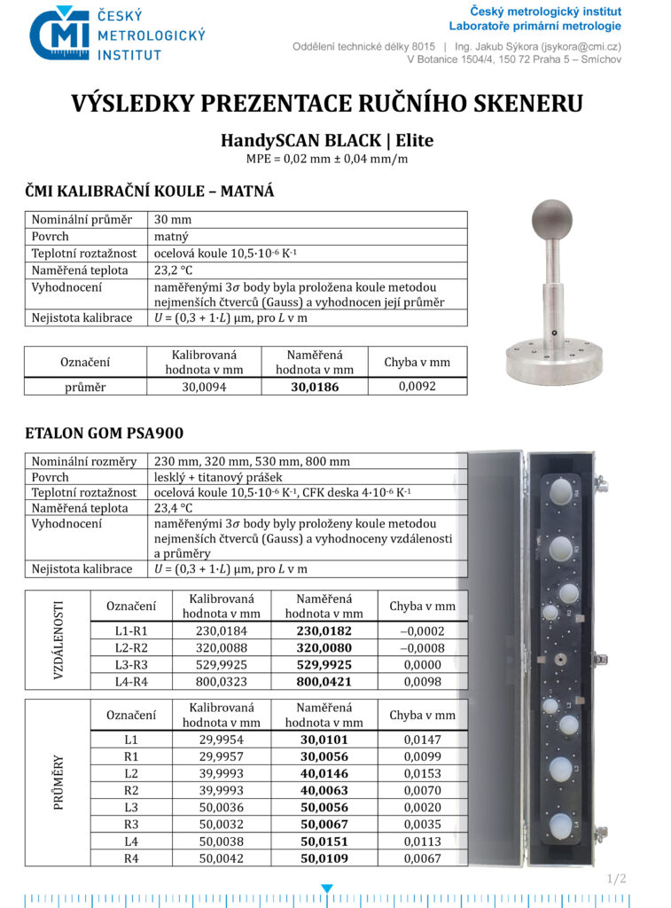 Nedávno došlo k testování našeho nejmodernějšího 3D skeneru HandySCAN BLACK u společnosti Český metrologický institut (ČMI), který je národním metrologickým institutem České republiky. Hlavním zaměřením testování bylo ověření přesnosti skenování na řadě rozdílných artefaktů.