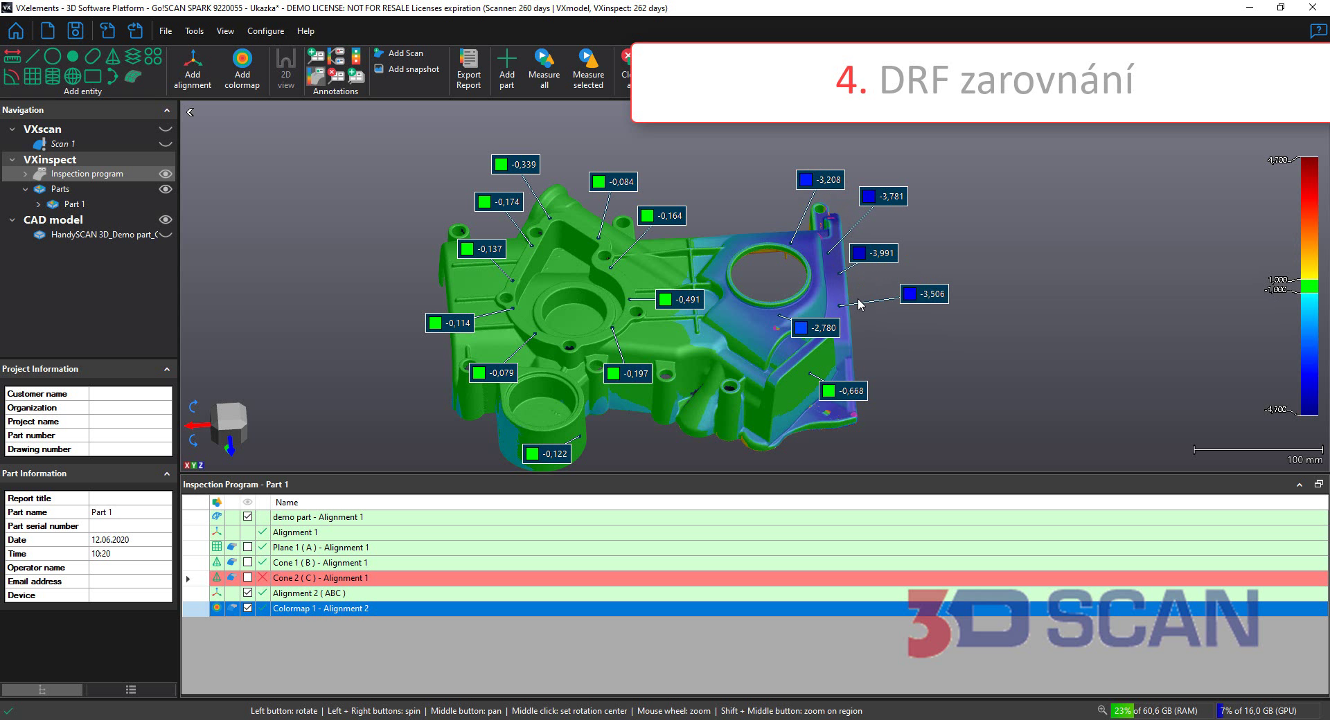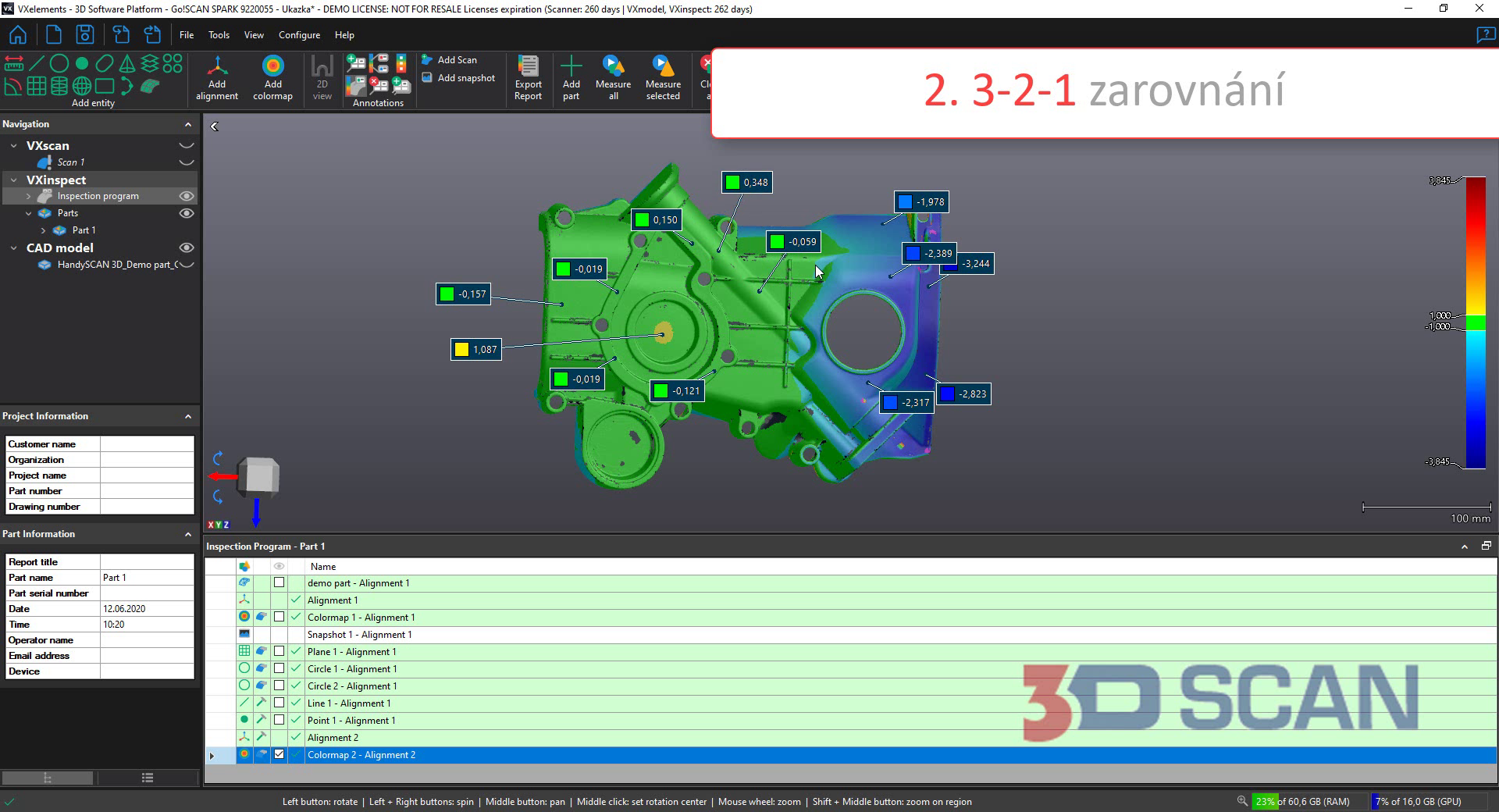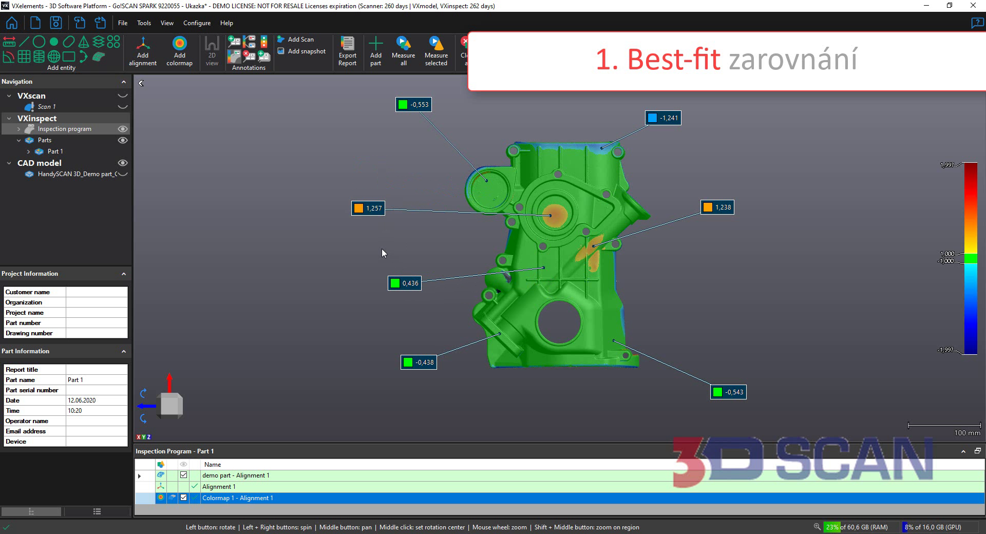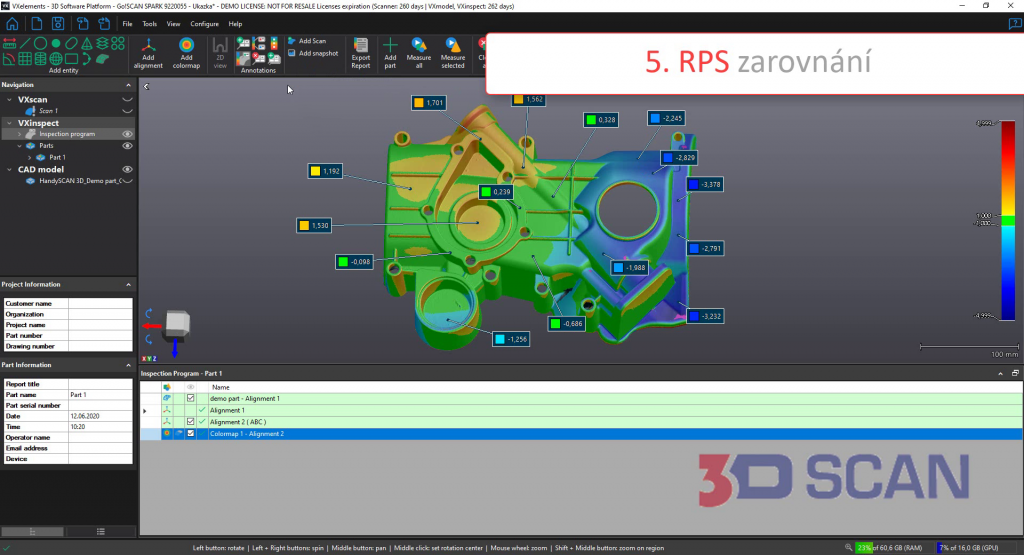 Při kontrole vyrobeného dílu nelze předpokládat, že jej naskenujeme a z programu automaticky dostaneme výsledek s odchylkami oproti CAD modelu. Inspekční programy nemohou vědět, jak má být daný díl přesně vyroben, jaké jsou jeho funkční vlastnosti a které body jsou důležité pro správné zasazení dílu do celkové sestavy.