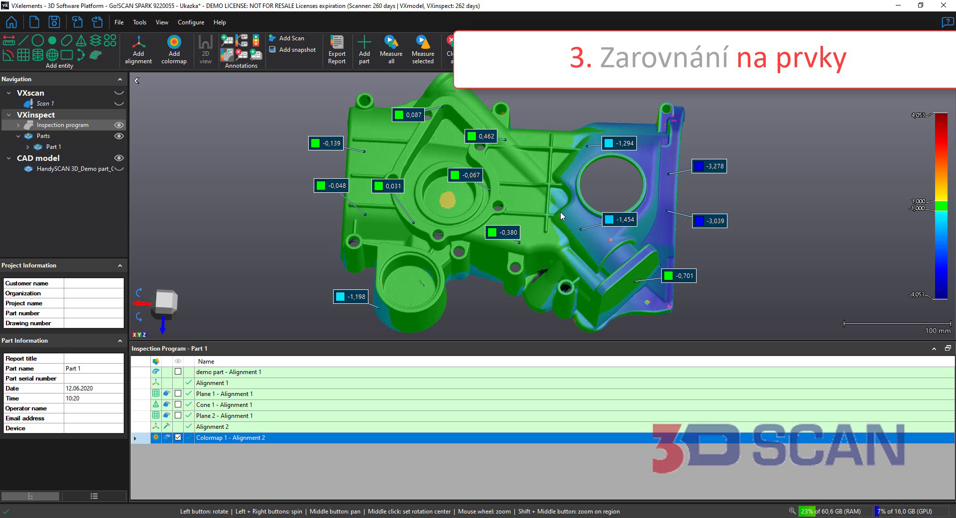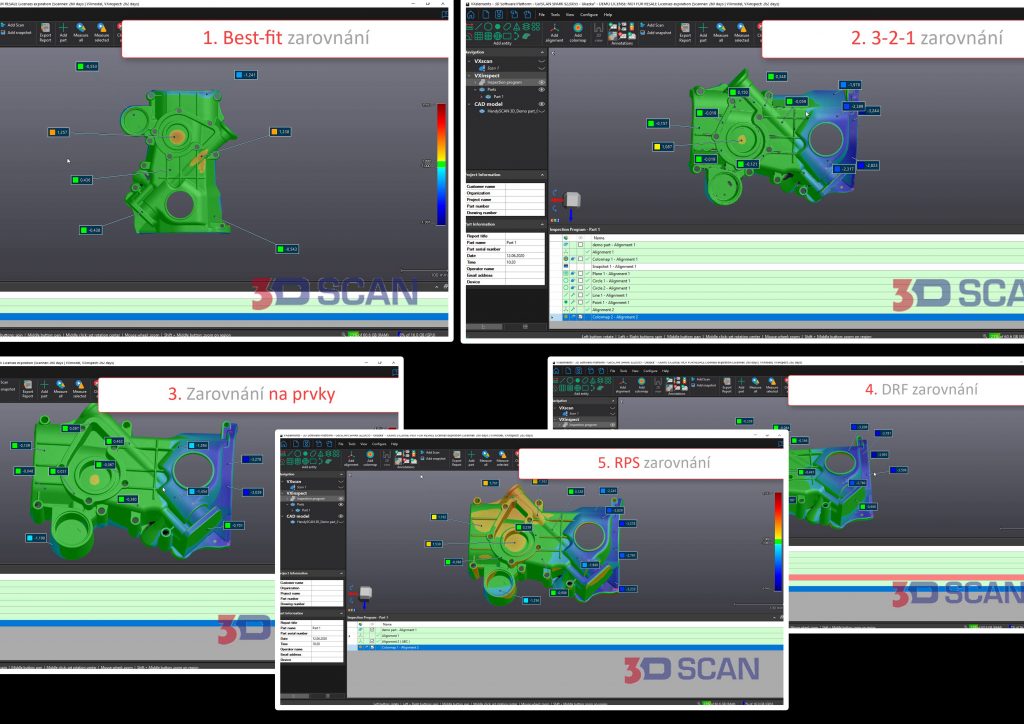 Z těchto důvodů je důležité, aby kontrolor správně zvolil na počátku kontroly dílu správné zarovnání naskenovaných dat vůči CAD modelu. Následně zobrazené odchylky budou odrážet realitu. Pojďme se tedy podívat na nejčastěji používané zarovnání: