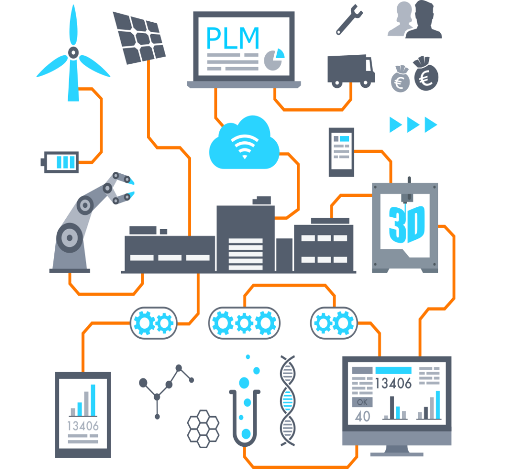 V mnoha výrobních společnostech již lze vidět značný posun k plně digitální výrobě. Robotizace je pouze začátek (Průmysl 3.0). Naučit stroje spolu komunikovat a třídit důležitá data, vyhodnocovat nezvyklé situace a atd. To je dalším cílem, který je však obtížnější.