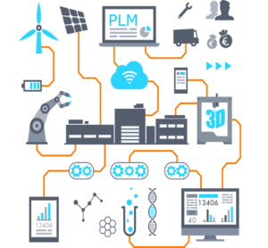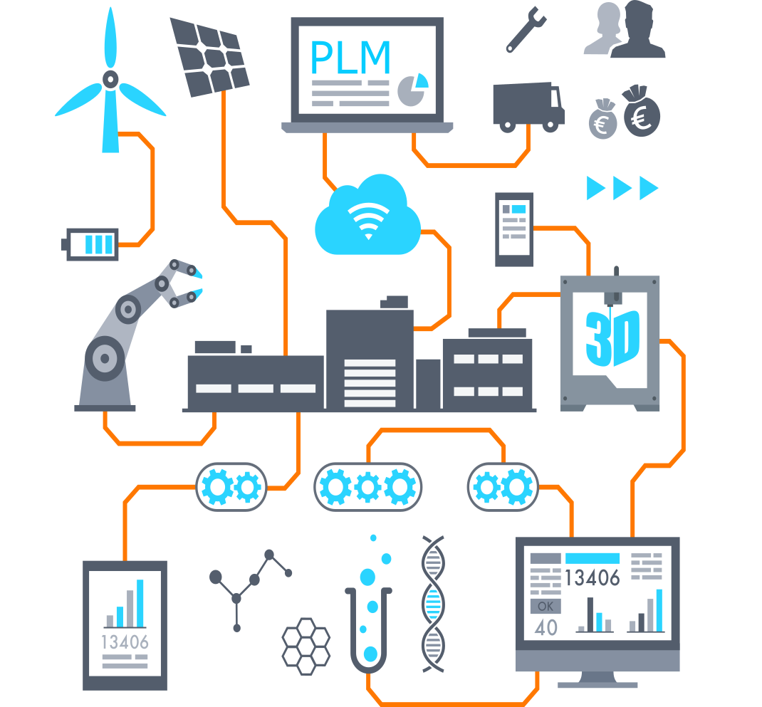 Hlavní myšlenkou je zapojení mechanických prvků výroby (roboti, CNC stroje,..) do digitálního života celé výrobní společnosti. Celou výrobu by tak lehce šlo ovlivňovat vzdáleně na základě průběžně získávaných informací ze všech zasíťovaných míst.