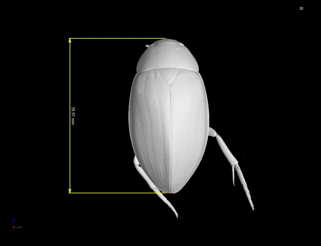 Žijeme v době, která je jednoznačně posedlá senzacemi a rekordy. I naše oddělení 3D skenování se tedy přichází pochlubit se svým příspěvkem. Nedávno se nám dostal do rukou exemplář Vodomila černého (Hydrophilus piceus L.), o kterém se v literatuře tvrdí, že je největším vodním broukem světa! Ten náš měřil bezmála 4cm což je na vodního brouka úctihodná velikost (viz animace, VGStudio MAX). V CT skeneru DeskTOM 130 jsme jej nasnímali v rozlišení 19 mikronů a získali tak velmi detailní 3D model. Náš tomograf dokáže snímat až v rozlišení 5 mikronů a specializované mikrotomografy jsou pak uzpůsobeny pro práci až v submikronové oblasti. Výpočetní tomografie tak jako metoda opět ukázala svoji sílu v možnosti skenovat ve velmi vysokém rozlišení. Pro ilustraci připojujeme další příklady skenů entomologických vzorků.