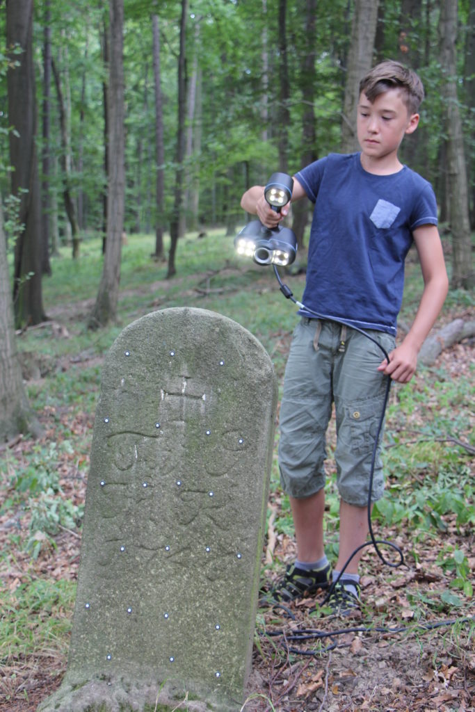 Vyhlídka práce v terénu nás nadchla, a tak jsme se domluvili, že během prázdnin naskenujeme požadované hraniční kameny. Jako dopravní prostředek mezi kameny jsme zvolili kola a 3D skener s externí powerbankou jsme převáželi v batohu na zádech. Ukázalo se, že naše fyzička je dobrá, ale na zdolání všech kopců během dne nestačí. Únava se během dne stupňovala, ale naštěstí přímou úměrou nás vždy povzbudilo nalezení kamene a bezproblémové naskenování pomocí 3D skeneru Go!SCAN 50. Tento skener se při skenování v přírodě velmi osvědčil a opět nám ukázal své výhody.