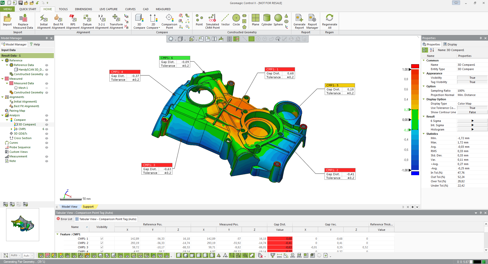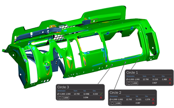 Výrobcovia dielov každého typu používajú Geomagic Control na overenie správnosti vyrábaných dielov a rýchlu identifikáciu problémov, ktoré sa vyskytujú pri výrobe. Pomocou bezdotykového skenovania alebo dotykovej sondy môžete priamo overovať presnosť vyrábanej súčasti na CAD modeli vo veľmi krátkom čase.