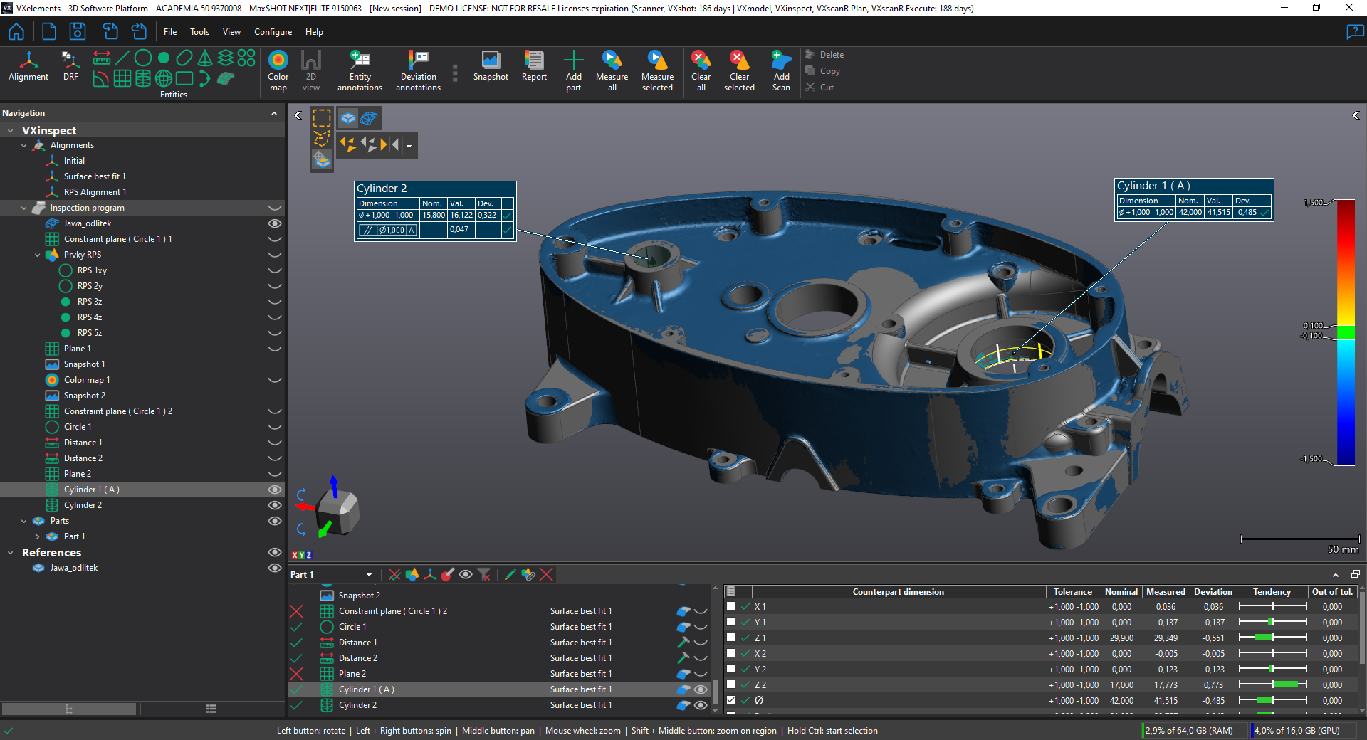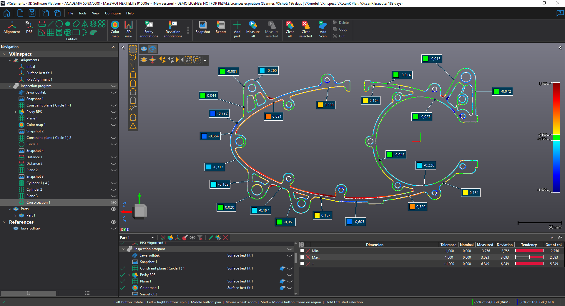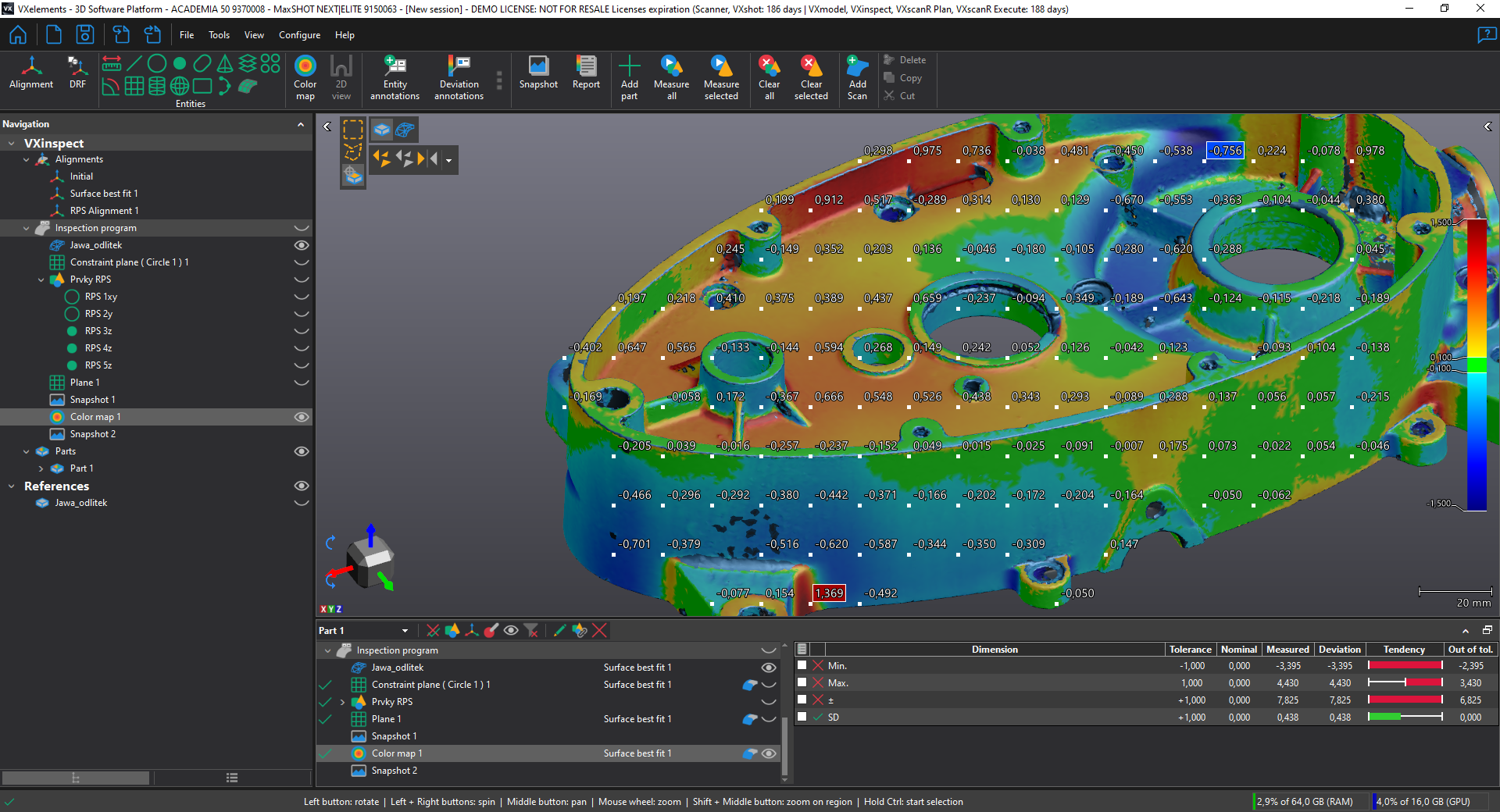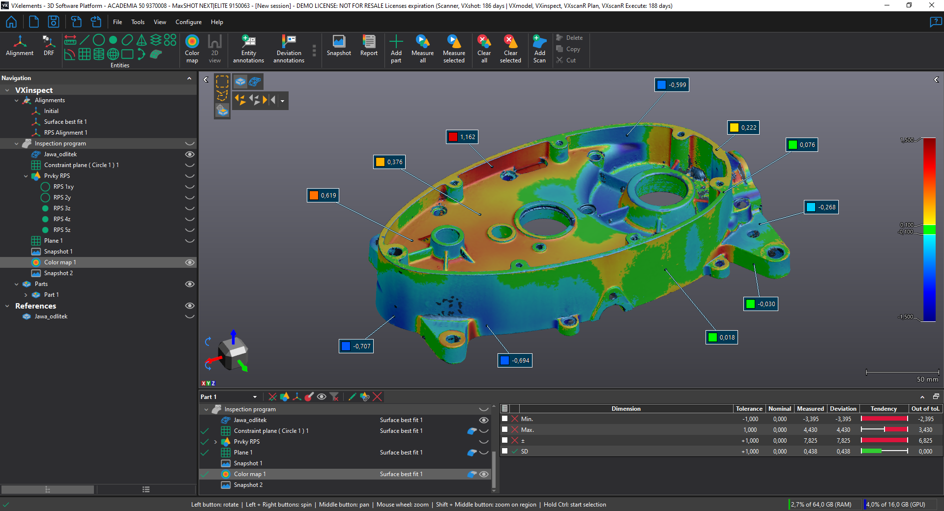 Inspection, ktorý je súčasťou Creaform Metrology Suite™, je komplexný a výkonný softvérový modul, ktorý umožňuje profesionálom v oblasti kontroly a zaisťovania kvality vykonávať kontroly a generovať protokoly na základe technických požiadaviek.