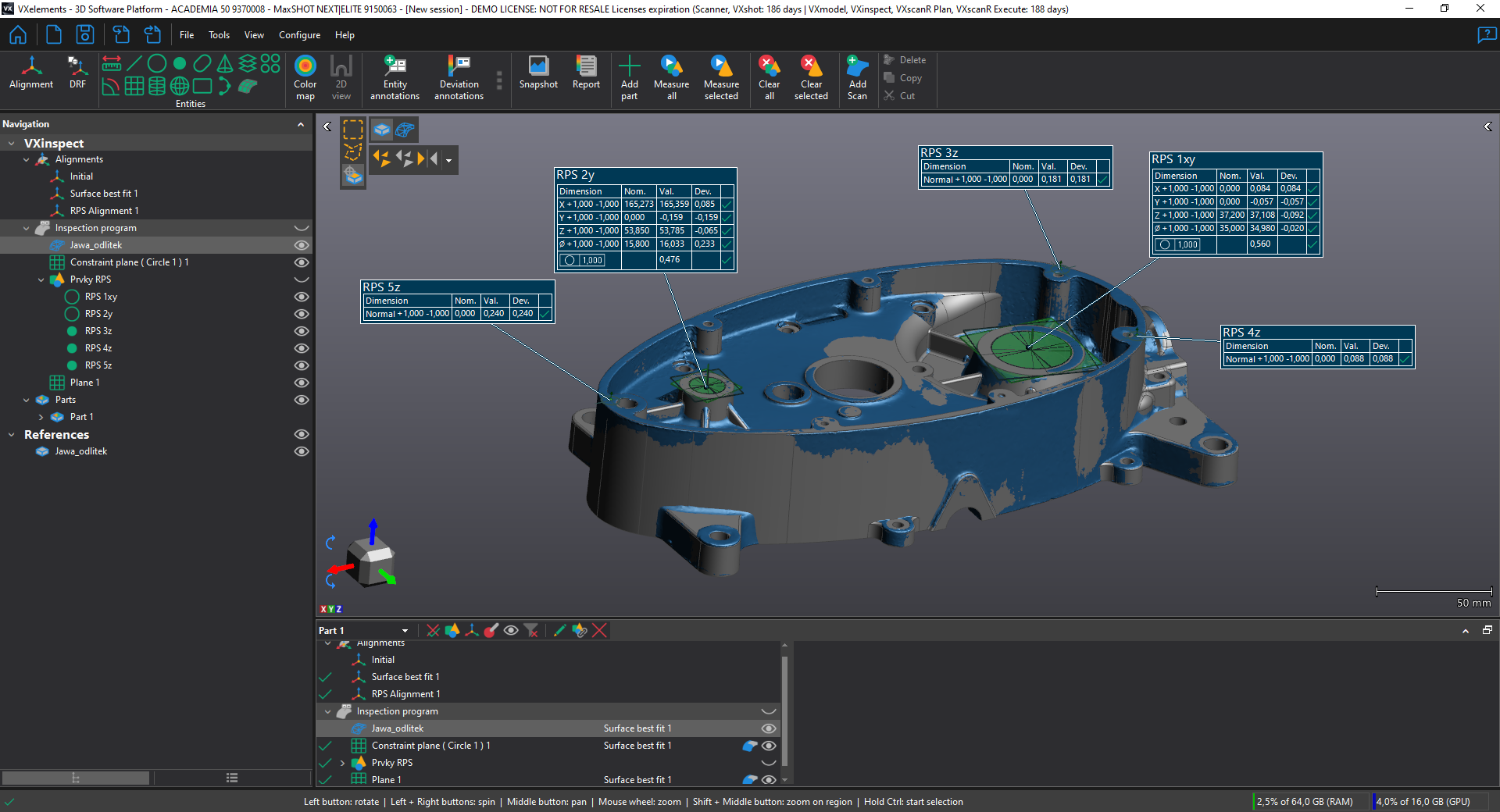 Inspection ponúka jednoduchú integráciu pre kontaktné (dotykové) a bezkontaktné (3D sken) merania v mnohých výrobných aplikáciách. Rozmerový kontrolný softvér je navrhnutý pre použitie v kombinácii s presnými meracími prístrojmi HandyPROBE, MetraSCAN 3D a HandySCAN 3D.