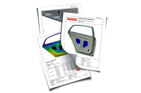 Report sa skladá zo screenshotov 3D scén az tabuliek výsledkov jednotlivých prvkov. Hodnoty sa automaticky aktualizujú, ak sa zmenia v projekte. Môžete tak teda upraviť parametre projektu, alebo nahradiť namerané dáta novými dátami z iného dielu a výsledný protokol bude automaticky aktualizovaný.