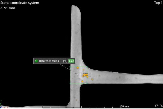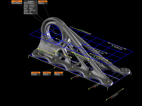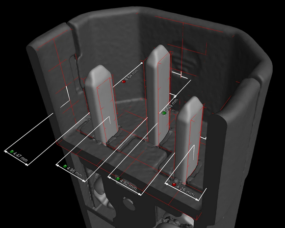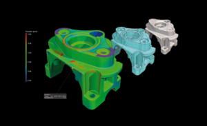 | meranie nedostupných povrchov a oblastí dielu | vykoná geometrické porovnanie CAD/mesh/voxel dát so zobrazením farebnej mapy geomerických odchýlok