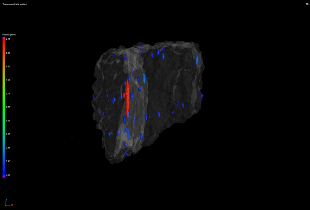 Programem pro analýzu voxelových dat VGSTUDIO MAX (Volume Graphics) jsme vyhodnotili a vizualizovali přítomnou porozitu. Po aplikaci filtru jsme získali zajímavý výsledek.