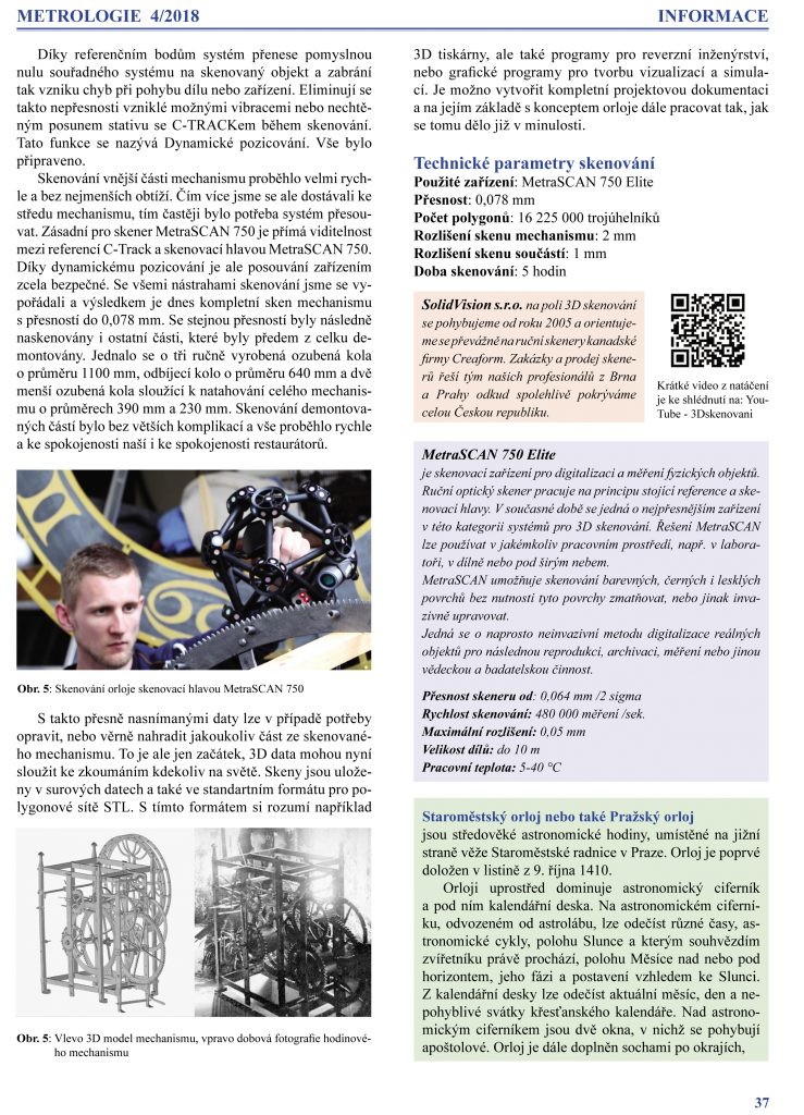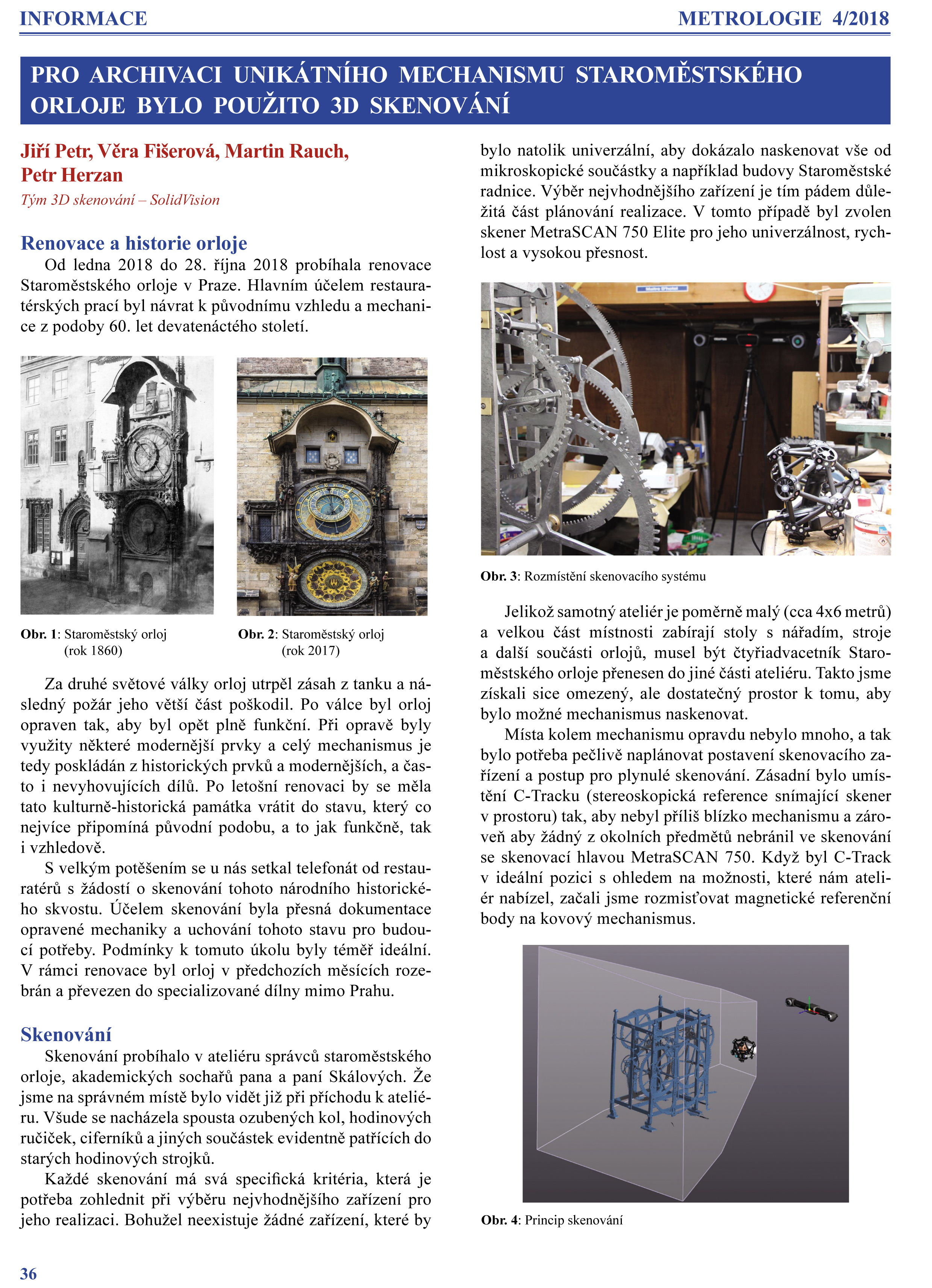 V časopise Metrologie vyšel článek o provedeném 3D skenování Staroměstského orloje. Celý článek si můžete přečíst zde: Metrologie 4-18.