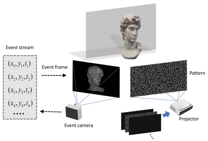 Promítnutý vzor bodů zakóduje scén u tak, že přiřadí určitou vlastnost bodům na scéně. Takovéto unikátní označení bodů umožní vyhodnocení změny mezi původním vzorem a vzorem zakřiveným podle povrchu zkoumaného objektu.