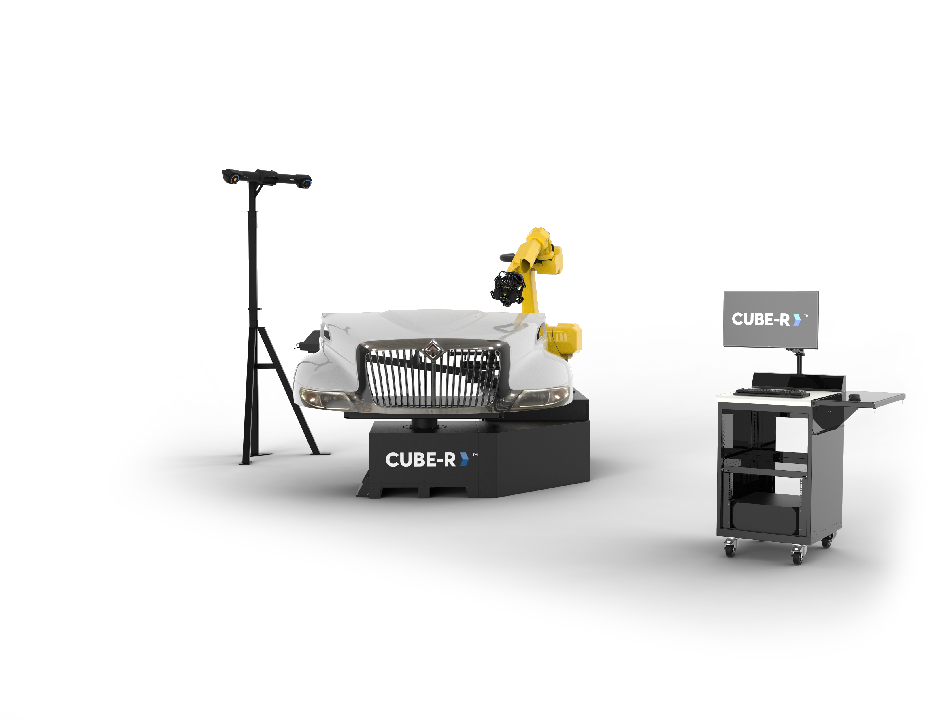 MetraSCAN 3D-R kombinuje sílu optické technologie a modrých laserových paprsků. Díky tomuto 3D skeneru lze snímat jak černé povrchy, tak i vysoce lesklé povrchy. MetraSCAN 3D-R je k dispozici buď jako zakázkové řešení s průmyslovým robotem nebo jako řešení na klíč (CUBE-R) od společnosti Creaform.