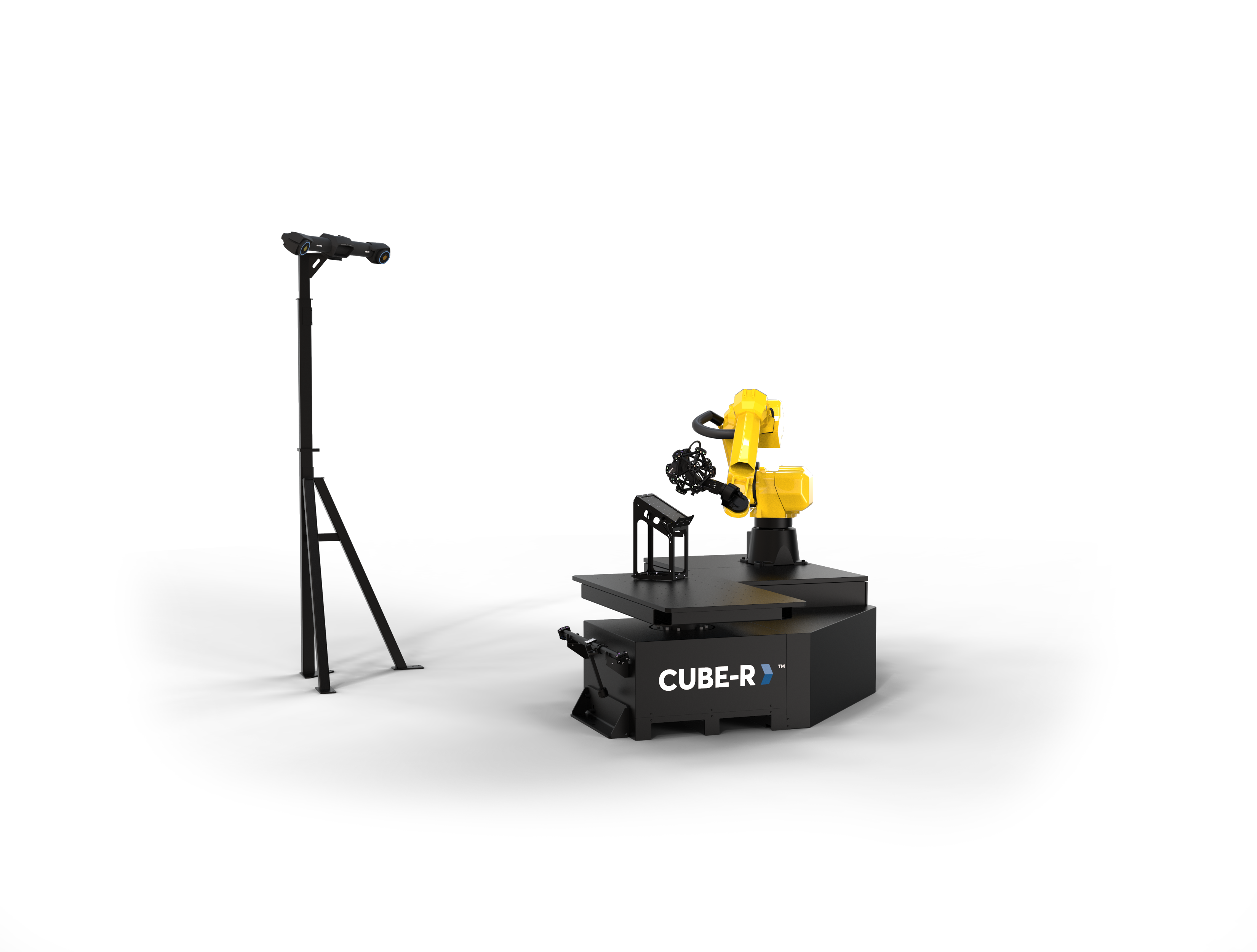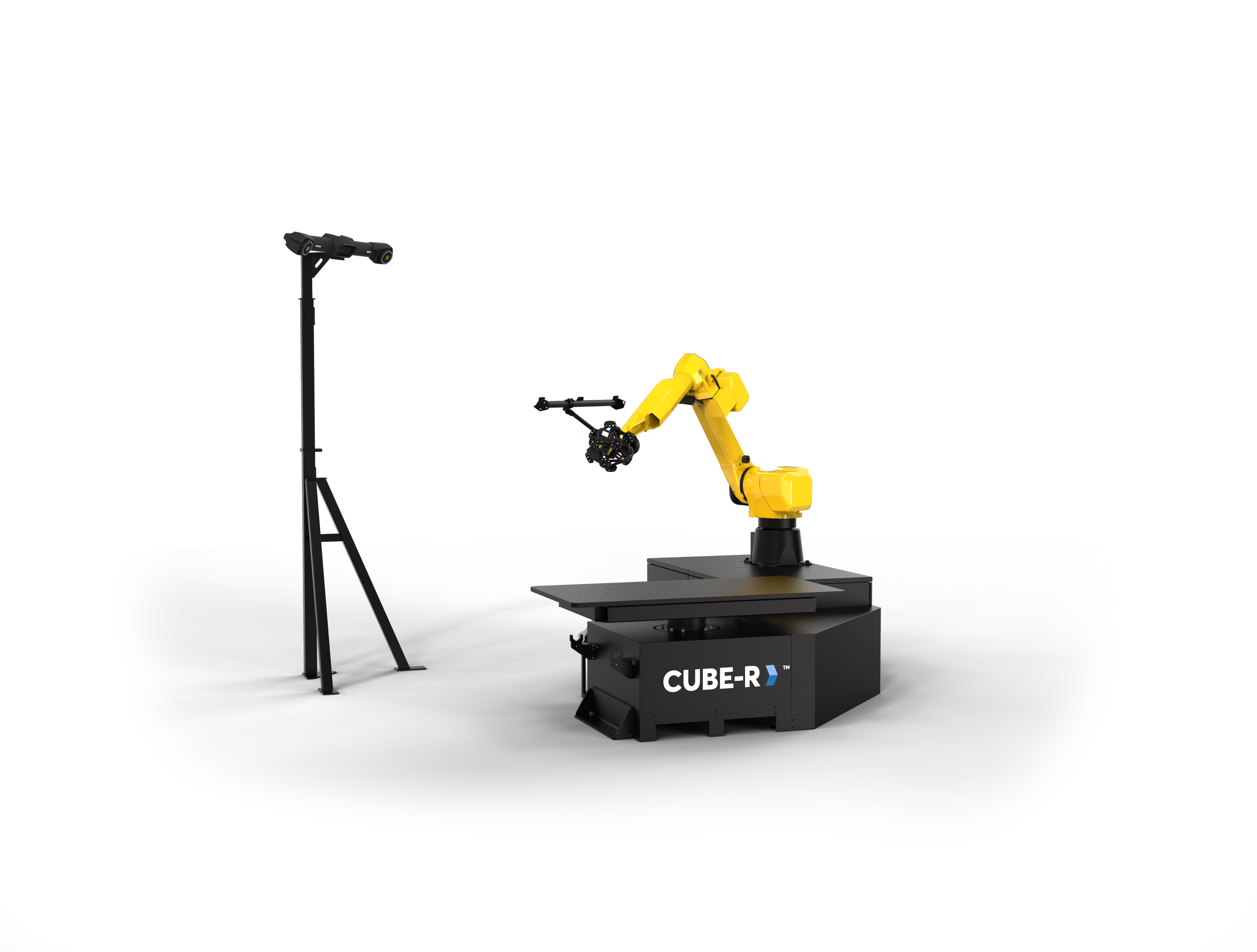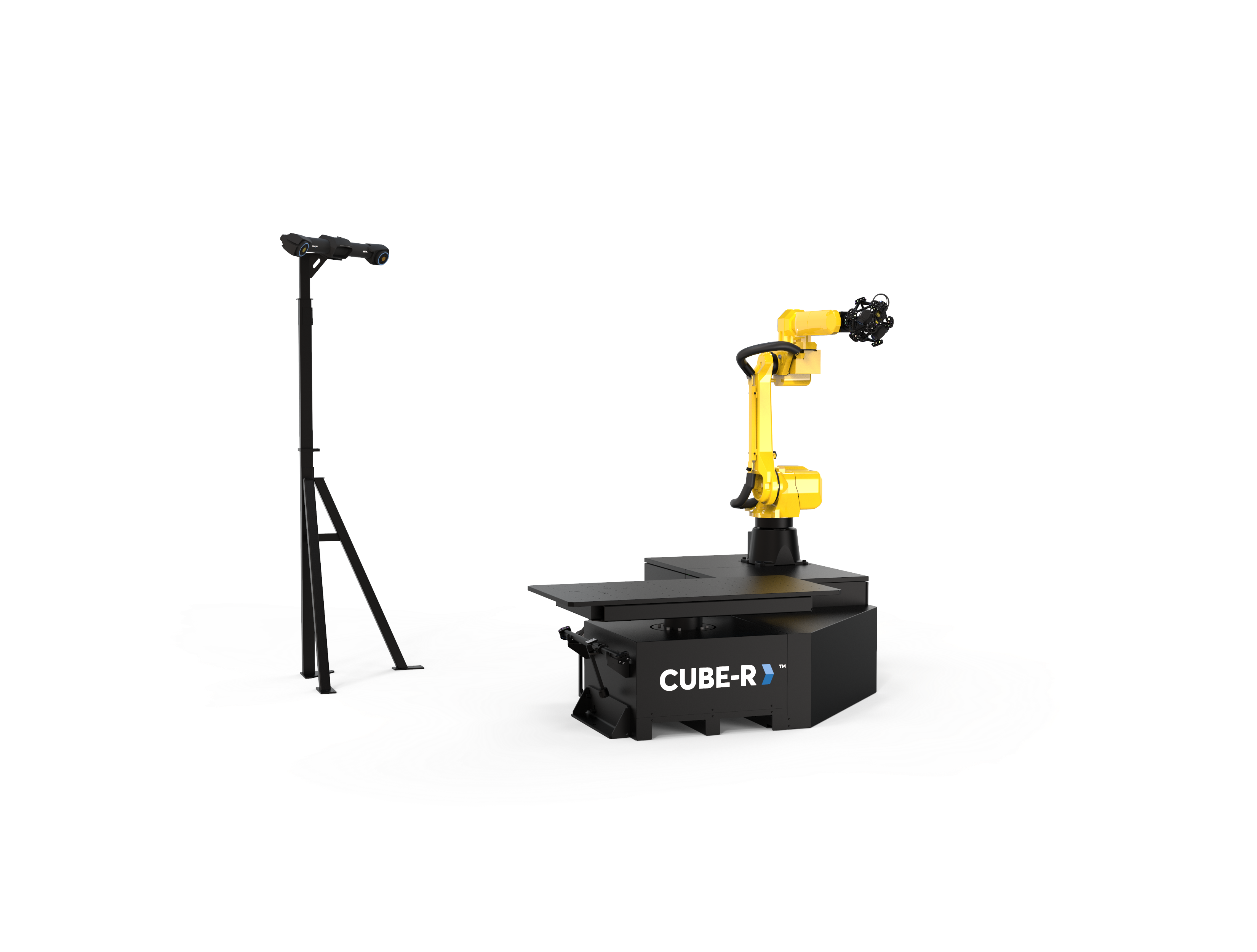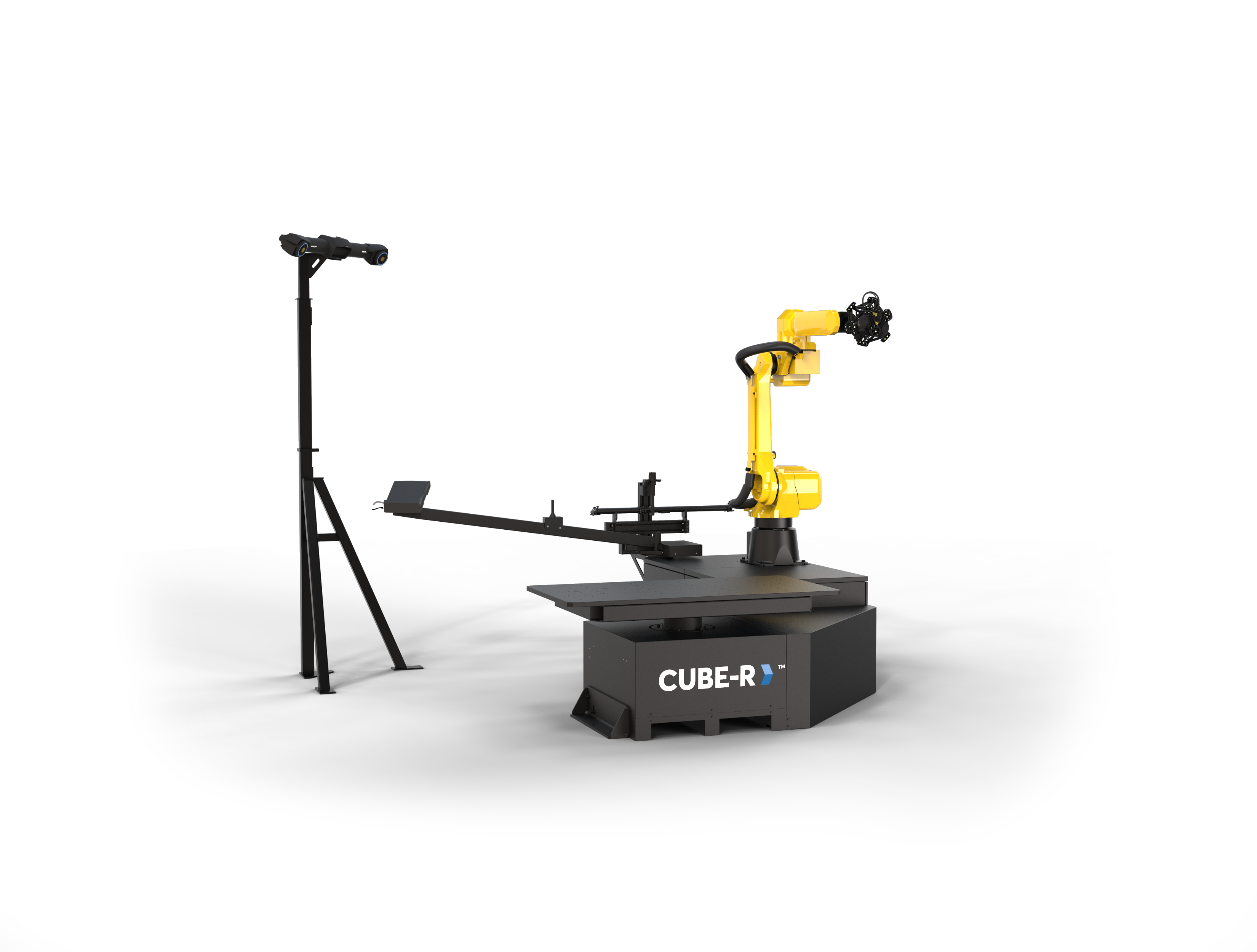 Řešení CUBE-R je vybaven automatickým otočným stolem. Díky vysoké nosnosti otočného stolu (1 500 Kg) lze skenovat i těžké odlitky a jiné komponenty s vysokou hmotností. Otočný stůl rozšiřuje pracovní rozsah robota a lze tak dosáhnout i nejvzdálenějších míst na skenovaném díle.