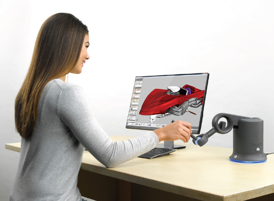 Haptické zařízení od firmy 3D Systems poskytuje uživateli pomocí stylusu zpětnou vazbu. Uživatel „cítí“, jakou silou tlačí na objekt ve virtuálním prostředí, a má tak možnost pomocí hmatu ovlivňovat výsledný tvar modelu. Zařízení přenáší odpor dotek zpět k uživateli pomocí motorků v jednotlivých kloubech. Toto haptické zařízení je ideální pro komerční použití i pro školské účely. Software lze používat i s obyčejnou myší.
