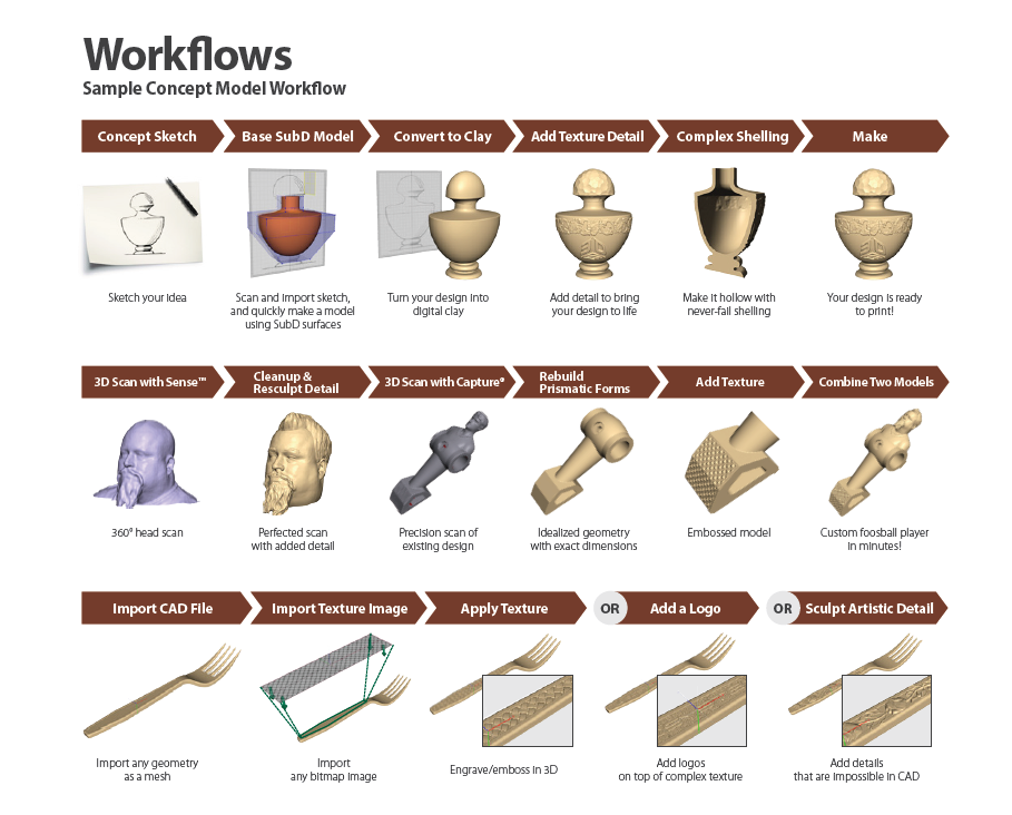 Software umožňuje návrháři doladit na výsledném modelu každý detail. Sculpt také umožňuje vytvářet texturu libovolné složitosti a následně ji ukládat s výsledným modelem. Texturu můžete také vytvořit pomocí importu libovolného obrázku. Ihned uvidíte výsledek a můžete hotový model zaslat na 3D tiskárnu.