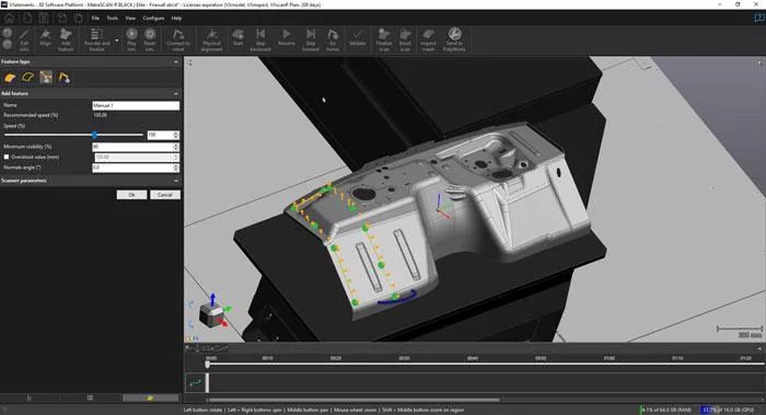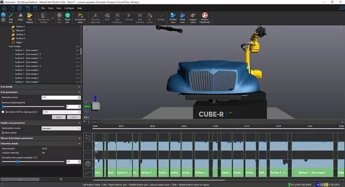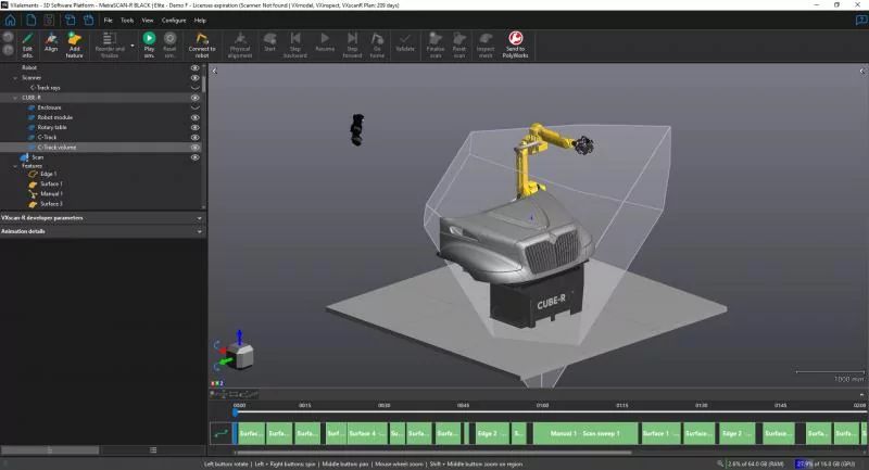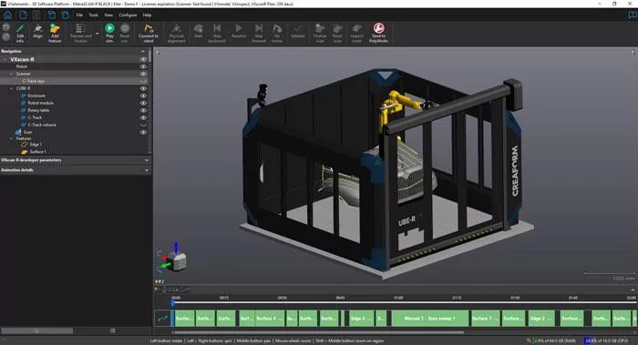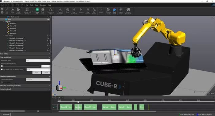 Automation je více než jen program pro řízení robotů. Automation Plan je kompletní řešení pro přípravu kontrolních projektů. Umožňuje importovat CAD modely, konfigurovat parametry skenování (rychlost, čas závěrky a rozlišení skenování), vytvářet trasy robota, simulovat skenování a exportovat data ze simulace do metrologických softwarů.