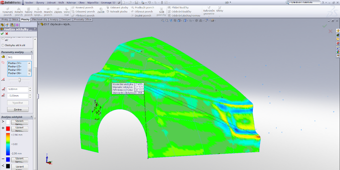 Tato analýza slouží pro kontrolu odchylek mezi polygonální sítí a nově vytvořenými plochami.