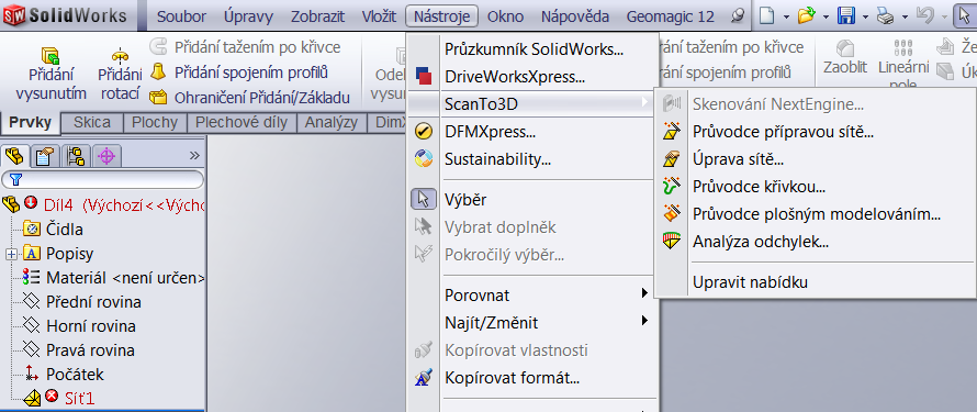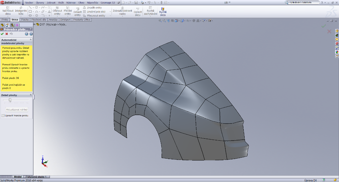 Při použití této funkce Vás SolidWorks nadále postupně provází všemi možnostmi pro úpravu sítě nebo mračna bodů. Postup práce: